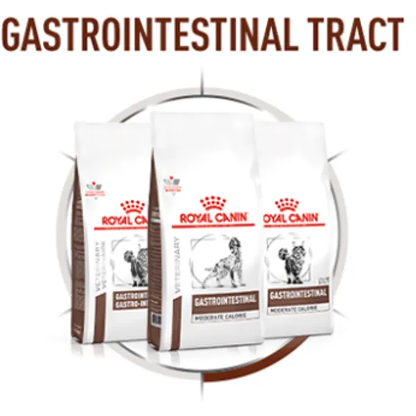 Gastrointestinal diets are specially formulated to support the management of digestive disorders in dogs and cats, offering targeted solutions based on individual needs. The standard Gastrointestinal formula provides high energy density for pets requiring additional calories, while the Gastrointestinal Moderate Calorie version helps maintain ideal body weight with a balanced calorie content. Gastrointestinal Fibre Response is rich in both soluble and insoluble fibers to promote healthy intestinal transit. For pets needing a fat-restricted diet, Gastrointestinal Low Fat delivers essential nutrients and adapted fiber levels to maintain energy and weight without excess fat.